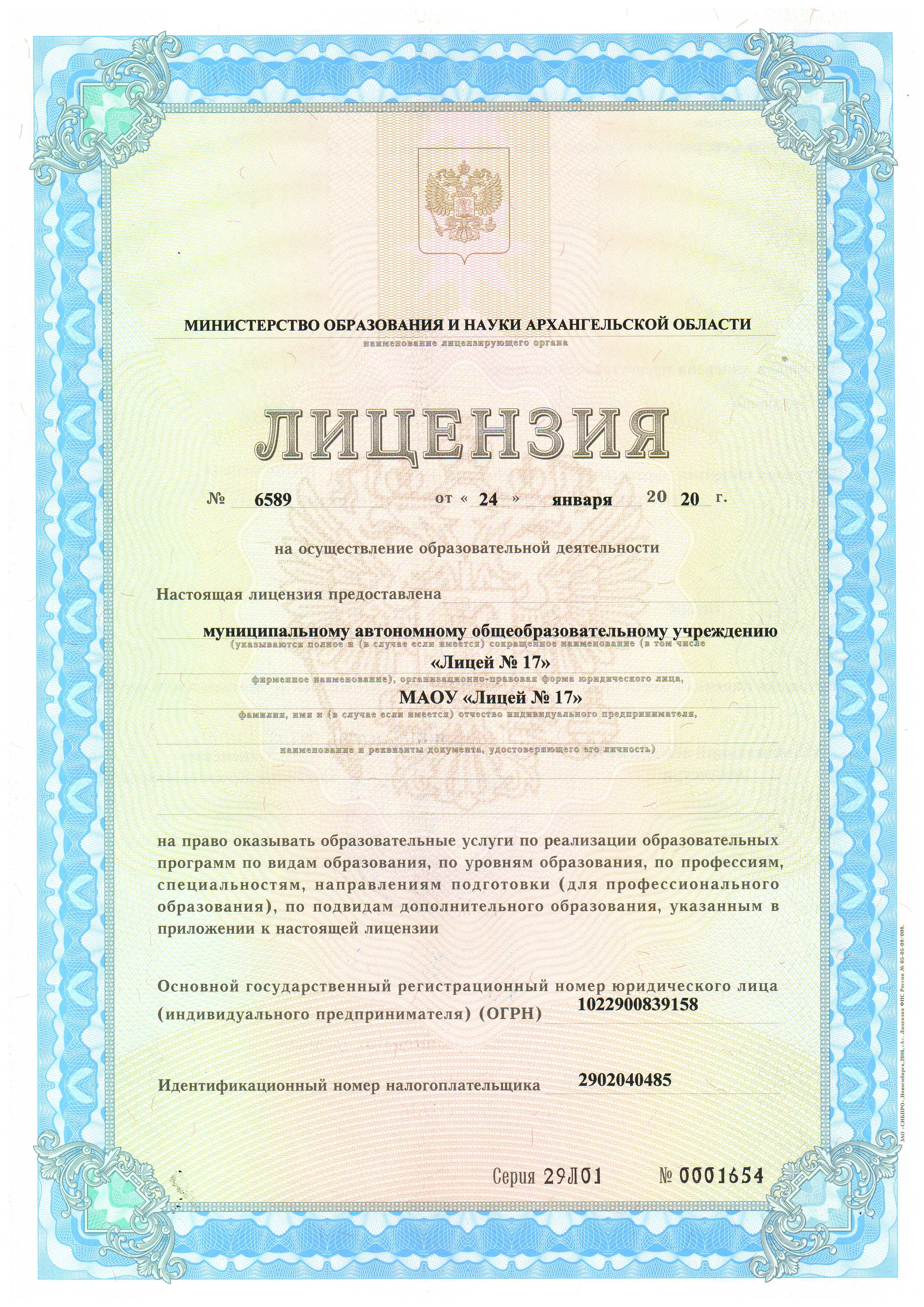 Лицензия на осуществление образовательной деятельности (скачать)